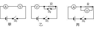 (Ⅱ)(13分)要测量一只量程已知的电压表的内阻,现有如下器材:A:待测电压表(量程6V,内阻约3KΩ);B:电流表(量程3A,内阻约为0.01Ω);C:定值电阻(阻值R=2KΩ,允许通过的最大电流0.5A);D:电源(电动势约为4.5V,但不知其准确值,内阻不计);E:开关两只,导线若干。现有一同学设计了图甲、乙、丙所示的测量电路,请你选择一个实验可行的电路,利用这个电路完成测量电压表的内阻,要求测量尽可能准确。