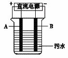 是该方法处理污水的实验装置示意图,使用金属A.B为电极,