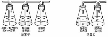 (1)以上实验装置中,可用于研究酵母菌有氧呼吸的是装置 ,I瓶中放置质量分数为10%的NaOH溶液的作用是 ,III、V两瓶中加入澄清的石灰水的作用是 。