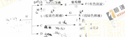 26.(14分)各物质之间的转化关系如下图,部分生成物省略。C、D是由X、Y、Z中两种元素组成的化合物,X、Y、Z的原子序数依次增大,在击期表中X的原子半径最小,Y、Z原子最外层电子数之和为10。D为无色非可燃性气体,G为黄绿色单质气体,J、M为金属,I有漂白作用,①常用于制作印刷电路板。
