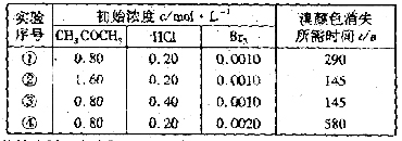通过测定溴的颜色消失所需的时间来确定。在一定温度下,获得如下实验数据:
