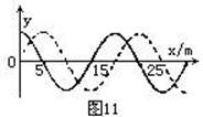 (2)(10分)如图11所示,实线为t1=0时刻的图象,虚线为t2=0.1s时刻的波形,求: