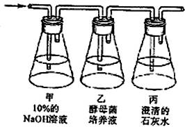在下图所示的装置中,从左侧不断地缓缓吹入少量空气,一段时间后丙瓶中的澄清石灰水变浑浊。根据这一结果,下列哪项判断正确