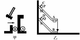 ②采用如图乙所示的装置,两个相同的轨道M、N,分别用于发射小铁球P、Q,其中M、N的末端水平,两轨道上端分别装有电磁铁C、D;调节电磁铁C、D的高度,使AC=BD,从而保证小铁球P、Q在轨道出口处的水平速度v0相等,现将小铁球P、Q分别吸在电磁铁C、D上,然后切断电源,使两小球能以相同的初速度v0同时分别从轨道M、N的下端A、B射出,实验可观察到的现象应是__________________。改变弧形轨道M的高度和电磁铁的位置(使AC=BD),重复上述实验,仍能观察到相同的现象,这说明________________________。