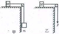 的物体相连,由静止释放;乙图为同一物体M在光滑水平面上用细线通过定滑轮竖直向下受到拉力