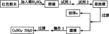 (4)实验小组欲利用含Fe2O3和Cu2O的红色粉末制取纯净的胆矾(CuSO4·5H2O)。经查阅资料得知,在溶液中通过调节溶液的酸碱性而使Cu2+、Fe2+、Fe3+分别生成沉淀的pH如下: