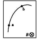 25.带电粒子进入云室会使云室中的气体电离,从而显示其运动轨迹。下图是在有匀强磁场云室中观察到的粒子的轨迹,a和b是轨迹上的两点,匀强磁场B垂直纸面向里.该粒子在运动时,其质量和电量不变,而动能逐渐减少,下列说法正确的是