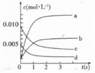⑵ 右图中表示NO2的变化曲线是 。用O2表示