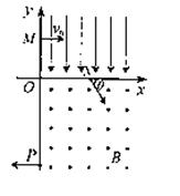 (18分)在平面直角坐标系xOy中,第Ⅰ象限存在沿y轴负方向的匀强电场,第Ⅳ象限存在垂直于坐标平面向外的匀强磁场,磁感应强度为B.一质量为m、电荷量为q的带正电的粒子从y轴正半轴上的M点以速度v0垂直于y轴射入电场,经x轴上的N点与x轴正方向成θ=60°角射入磁场,最后从y轴负半轴上的P点垂直于y轴射出磁场,如图所示.不计粒子重力,求