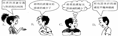 室温下,将少量的生石灰加到一定质量的饱和石灰水中,溶液的温度升高,再恢复到室温(不考虑水的蒸发)。下列四位同学对变化后溶液的分析错误的是(