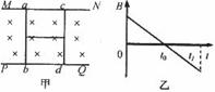 两棒用绝缘细线系住,开始时匀强磁场的方向如图甲所示,而磁感应强度B随时间t的变化如图乙所示,不计ab、cd间电流的相互作用,则细线中张力
