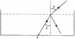 一足够人的水池内盛有某种透明液体,液体的深度为H,在水池的底部中央放一点光源,其中一条光线以30°入射角射到液体与空气的界面上,它的反射光线与折射光线的夹角为105°,如图.求: