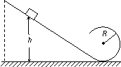 (16分)如图所示,位于竖直平面内的光滑轨道,由一段斜的直轨道和与之相切的圆形轨道连接而成,圆形轨道的半径为R。一质量为m的小物块从斜轨道上某处由静止开始下滑,然后沿圆形轨道运动。要求物块能通过圆形最高点,且在该最高点与轨道间的压力不能超过5mg(g为重力加速度)。求物块初始位置相对于圆形轨道底部的高度h的取值范围。