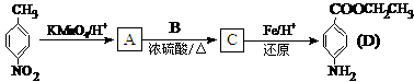 33.(16分)苄佐卡因是一中医用麻醉药品,学名对氨基苯甲酸乙酯,它以对硝基甲苯为主要起始原料经下列反应制得: