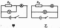 ③(4分)如上右图,要用伏安法测量Rx的电阻,已知电压表内阻约几kΩ,电流表内阻约1Ω,若用图甲电路,Rx的测量值比真实值_______(填“偏大”或“偏小”),若Rx的阻值约为10Ω,应采用 (选“甲”或“乙”)图的电路,误差会比较小。