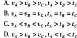 在同一平台上的O点抛出的3个物体,做平抛运动的轨迹如图所示,则3个物体作平抛运动的初速度υA、υB、υC的关系分别是