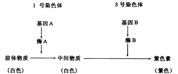 (1)由图可知:植株必须同时具备 和 基因,才可产生紫色素。