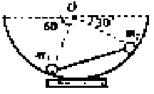 如图所示,一个半球形的碗放在桌面上,碗口水平,O是球心,碗的内表面光滑。一根轻质杆的两端固定有两个小球,质量分别是m1,m2.当它们静止时,m1、m2与球心的连线跟水平面分别成60°,30°角,则碗对两小球的弹力大小之比是