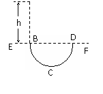 如图所示,虚线EF的下方存在着正交的匀强电场和匀强磁场,电场强度为E,磁感应强度为B.一带电微粒自离EF为h的高处由静止下落,从B点进入场区,做了一段匀速圆周运动,从D点射出. 下列说法正确的是 ( )