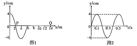 15.如下图1为一列沿X轴方向传播的简谐横波在t=0时刻的波动图像,下图2为质点P的振动图像,由此可知 ( )