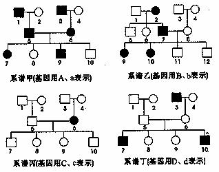 下图为甲、乙、丙、丁4种遗传性疾病的调查结果,根据系谱图分析、推测这4种疾病肯定是常染色体遗传病的是