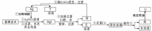32.(16分)在已经提取氯化钠、溴、镁等化学物质的富碘卤水中,采用下面的工艺流程提取单质碘: