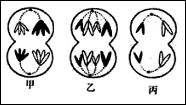 3、右下图甲、乙、丙分别表示不同高等动物(体细胞内染色体数量相同)正在分裂的细胞。在正常情况下,下列说法正确的是:①甲细胞内可能发生基因重组,该动物可能是雄性;②乙细胞内有4个染色体组,该动物一定是雌性;③丙细胞内有等位基因,该动物只能是雌性;④丙细胞可能分裂成基因组成相同的两个子细胞,该动物可能是雄性。