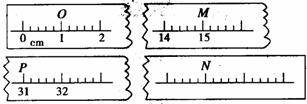 做入射小球。斜槽末端边缘处在地面的白纸上的投影点为O,碰撞前后两球多次落点的平均位置分别为M、P、N,但N点的位置模糊不清。请你根据动量守恒和下图中的读数判定N点的位置应在