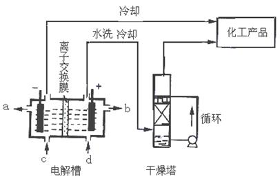 (1)上图是离子交换膜法电解饱和食盐水示意图,电解槽阳极产生的气体是 ;NaOH溶液的出口为 (填字母);精制饱和食盐水的进口为 (填字母);干燥塔中使用的液体干燥剂是 。