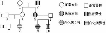 (3)调查中发现一男生患有色盲,其同胞姐姐患有白化病,经调查其家族系谱图如上图: