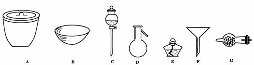 30、(15分)进行下面的实验,必须用到下列何种仪器,请用该仪器的名称填空:
