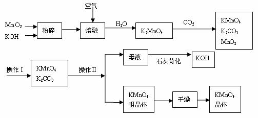 (5)操作Ⅰ的名称是__________;操作Ⅱ是根据KMnO4和K2CO3两物质在__________(填性质)上的差异,采用__________________(填实验操作步骤)、趁热过滤得到KMnO4粗晶体的。