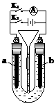 (7分)右图所示装置,U形管中装满着稀H2SO4,a为铁电极,b为多孔石墨电极。