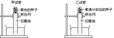 36、(12分)将等量萌发的种子和煮沸自然冷却后的种子分别放入甲、乙两试管中,如下图所示(本实验中石蜡油短期内不影响生物的生长)。两试管中均无空气存在。据图分析回答: