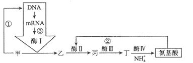(1)氨基酸属于微生物的_________代谢产物,从微生物的代谢调节来看,酶I是 _____酶。氨基酸在细胞中积累过多,会抑制酶II的活性,这种调节方式是___________调节,该调节方式与①相比有_____________等特点。