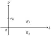 23.(18分)地球周围有磁场,由太空射来的带电粒子在此磁场中的运动称为磁漂移。以下描述的是一种假设的磁漂移运动。一带正电的粒子在x=0、y=0处沿y方向以某一速度v0运动,空间存在垂直于图中纸面向外的匀强磁场,在y>0的区域中,磁感强度为B1,在y<0的区域中磁感强度为B2,B2 >B1,如图所示。