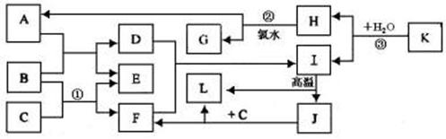26.(16分)已知A、C、D、F均是溶液,其中A、C是重要的基础化工原料,C可使酚酞试液变红。B、G、I、J、K是固体,其中B是常见的金属单质,G是常见的非金属单质。E、H是气体,且E是单质。H、J、K、L均是由两种元素组成的化合物,L常温下为液态,物质之间的转化关系如下图所示: