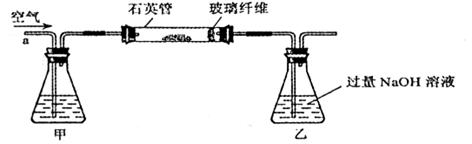 I.将m1 g该黄铁矿样品放入如下图所示装置(夹持和加热装置省略)的石英管中,从a处不断地缓缓通入空气,高温灼烧石英管中的黄铁矿样品至反应完全。石英管中发生反应的化学方程式为:![]()