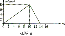 (16分)在水平地面上有一质量为2kg的物体,物体在水平拉力F的作用下由静止开始运动,10s后拉力大小减为F/3,该物体的运动速度随时间t的变化规律如图8所示.求: