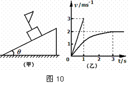 (20分)如图10所示,在倾角为θ=30°的长斜面上有一带风帆的滑块从静止开始沿斜面下滑,滑块的质量为m=2kg,它与斜面的动摩擦因数为μ,帆受到的空气阻力与滑块下滑的速度成正比,即f=kv.若从静止开始下滑的速度图像如图中的曲线所示,图中的直线是t=0时速度图像的切线,g=10m/s2.