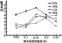 右图表示在不同处理时间内不同浓度的秋水仙素溶液对黑麦根尖细胞畸变率(细胞畸变率(%)=