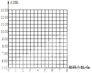 请在右图坐标上画出指针在刻度尺上的所指的刻度x与所挂钩码个数的关系图像。