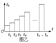 图甲是用来加速带电粒子的回旋加速器的示意图.其核心部分是两个D型金属盒,在加速带电粒子时,两金属盒置于磁感应强度为B的匀强磁场中,并分别与高频电源相连。带电粒子在电场中的运动的动能EK随时间t的变化规律如图乙所示,若忽略带电粒子在电场中的加速时间,则下列判断正确的是w.w.^w.k.s.5*