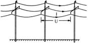 20.如图所示为平原上的三相高压输电线路示意图.每根输电杆高度相同、等距排列,相邻输电杆间三段导线长度相同.己知输电线粗细均匀,横截面积均为S,电阻率均为ρ,密度均为ρ1.若相邻输电杆间每根输电线两端电压为U、每根电线输电电流为I,不计导线电流间相互作用力.则导线对每根输电杆的总作用力大小为