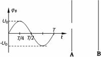 21.图中A,B是一对平行金属板,在两板间加上一周期为T的交变电压u,A板的电势φA= 0,B板的电势φB随时间的变化规律如图所示。现有一电子从A板上的小孔进入两板间的电场区内,设电子的初速度和重力的影响可忽略