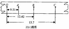 I、(8分)在做“验证机械能守恒定律”的实验中,某同学按照正确的操作选得纸带如图。其中O是起始点,A、B、C是打点计时器连续打下的3个点。该同学用毫米刻度尺测量O到A、B、C各点的距离,并记录在图中。(单位㎝)