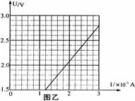 II、(10分)甲、乙两同学使用完全相同的器材用伏安法测量同一未知电阻Rx的阻值,电流表mA(量程0-5mA,内阻约10Ω),电压表V(量程0-3V,内阻约3000Ω),最大阻值为1700Ω的滑动变阻器,电源E(电动势约为3V),开关S、导线若干.两人将其测量数据绘成U-I图象后如图甲和图乙所示。
