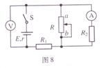 、R2及滑动变阻器R连接成如图8所示的电路,开关S闭合后,当滑动变阻器的滑片由中点滑向