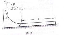 度不变,此后小物体将沿圆弧轨道下滑,已知A点与轨道圆心O的连线长也为R,且AO连线与水平方向夹角θ=30°,在轨道末端C点紧靠一质量M=3kg的长木板,长木板可在水平面上无摩擦地滑动,且长木板上表面与圆弧轨道末端的切线相平。小物体恰好不滑出长木板,木板长度L=3m,g取10m