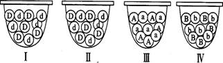 2.甲、乙两位同学分别用小球做遗传定律模拟实验。甲同学每次分别从Ⅰ、Ⅱ小桶中随机抓取一个小球并记录字母组合;乙同学每次分别从Ⅲ、Ⅳ小桶中随机抓取一个小球并记录字母组合。将抓取的小球分别放回原来小桶后再多次重复。分析下列叙述,不正确的是 ( )